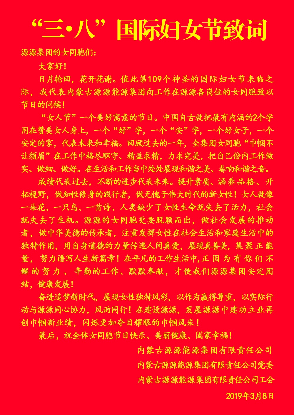 2019年三·八”国际妇女节致词
