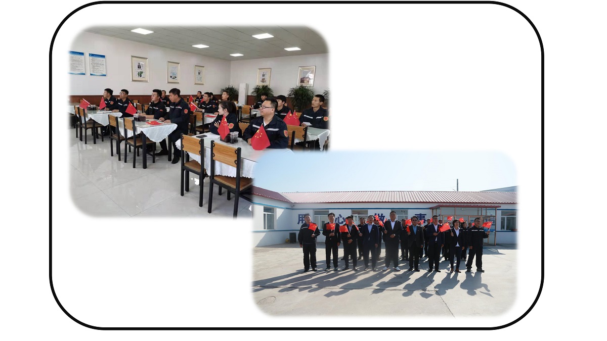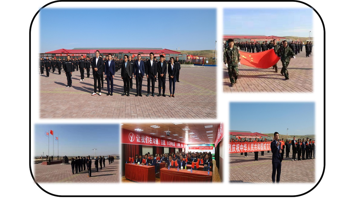 值此新中国成立70周年之际,内蒙古源源能源集团有限责任公司积极贯彻市委、市政府安全生产相关要求和工作部署,对下属所有生产单位全面停产,组织全体员工开展爱国主义系列活动。集团领导高度重视,各单位积极响应,全力营造共庆祖国华诞、共筑复兴伟业、共建一流企业的浓厚氛围。2019年10月1日,集团领导班子在总经理乔丽博的带领下,深入各基层单位,与坚守在一线的员工共唱《我和我的祖国》、为祖国送上祝福、参加庄严肃穆的升旗仪式、共同观看阅兵式。
