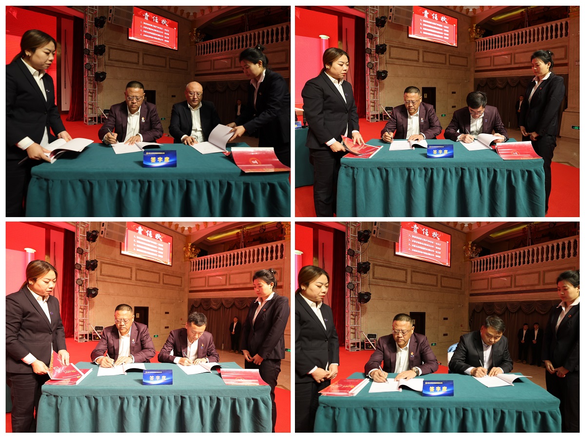 会上集团董事长乔丽博分别与煤、电、硅、热四个板块负责人签订了2024年度《经济指标和安全生产责任状》,责任状的签订,让各单位对工作目标更加清晰,也更加明确了努力方向,要求各分子公司根据自身的实际情况,把年度重点工作安排好、落实好,在2024年向集团交出一份精彩的答卷。