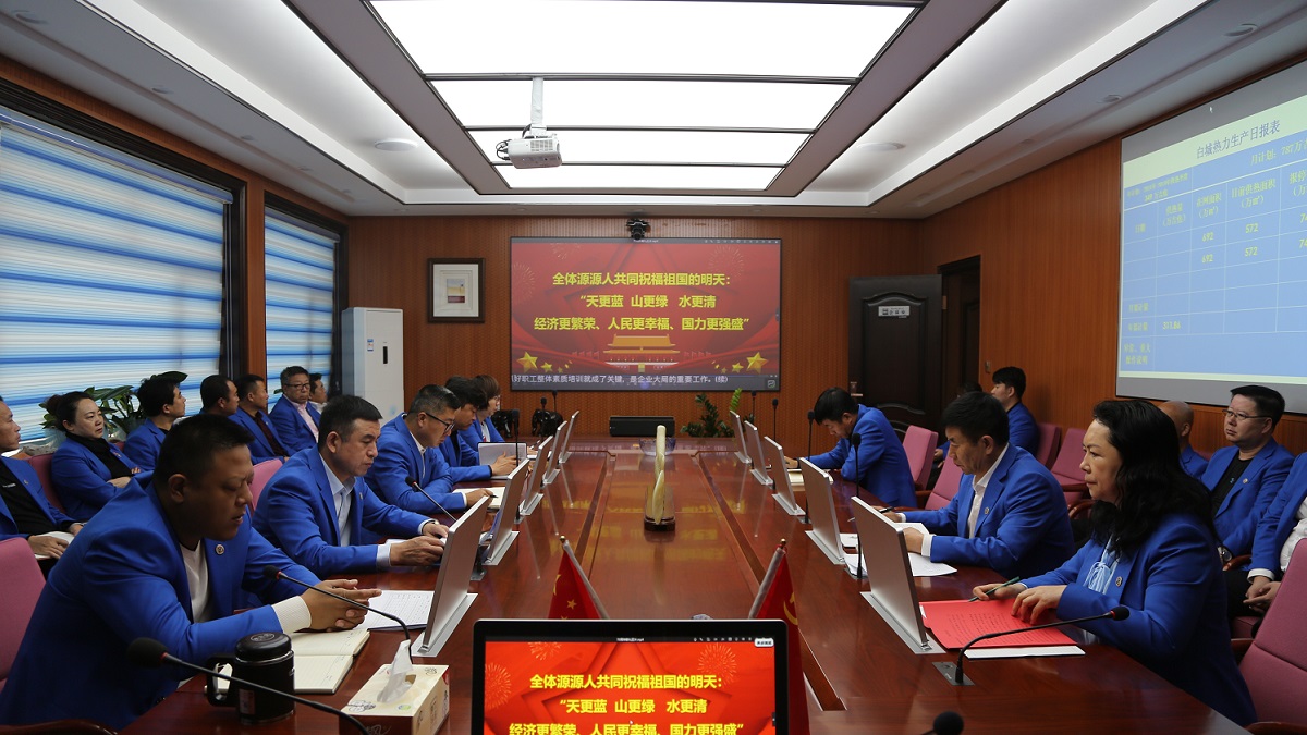 在新中国成立七十周年之际,内蒙古源源能源集团于9月30日早调会上开展“不忘初心 牢记使命”主题教育活动。会上党委书记王爱华致辞,全集团三十余家分子公司通过视频会议共同观看《七十年岁月如歌》献礼巨片。