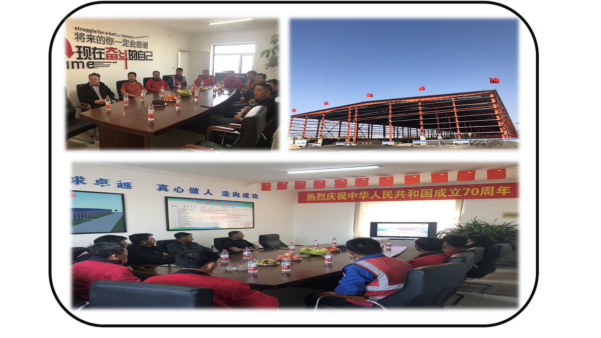值此新中国成立70周年之际,内蒙古源源能源集团有限责任公司积极贯彻市委、市政府安全生产相关要求和工作部署,对下属所有生产单位全面停产,组织全体员工开展爱国主义系列活动。集团领导高度重视,各单位积极响应,全力营造共庆祖国华诞、共筑复兴伟业、共建一流企业的浓厚氛围。2019年10月1日,集团领导班子在总经理乔丽博的带领下,深入各基层单位,与坚守在一线的员工共唱《我和我的祖国》、为祖国送上祝福、参加庄严肃穆的升旗仪式、共同观看阅兵式。