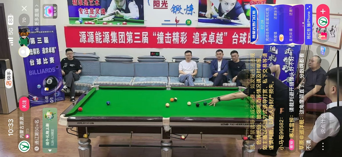 经过前期多轮紧张激烈的淘汰赛,5月29日,备受瞩目的男子组决赛在集团机关职工活动中心激情上演。决赛现场高潮迭起,选手们高超的球技和顽强的拼搏精神赢得了现场观众的阵阵掌声。为让更多职工共享赛事盛况,集团工会首次对决赛进行了网络直播,线上线下同步感受台球运动的魅力与决赛的紧张刺激。